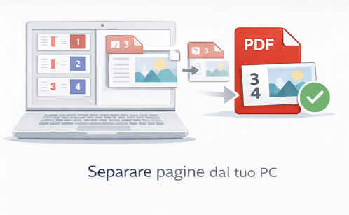 Dividere un PDF (o estrarre solo alcune pagine) è l’operazione più utile quando devi inviare “solo la parte giusta”: pagine 2–3 di un contratto, le ricevute dentro una scansione lunga, gli allegati messi tutti insieme, o un PDF enorme che un portale rifiuta perché supera il limite di MB. La soluzione corretta non è “stampare in PDF” o rifare tutto, ma usare uno strumento che ti permette di scegliere pagine singole o intervalli (tipo 1–3, 5–7) e generare un nuovo PDF pulito. In questa MiniGuida ti faccio fare la cosa in 30 secondi e poi ti do i metodi migliori online e offline, più i fix per i casi tipici: ordine sbagliato, pagine mancanti, PDF troppo grande e file che si apre male.